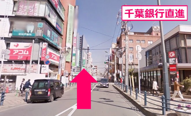 JR新松戸駅を背にして右へ進むと「千葉銀行」が見えます