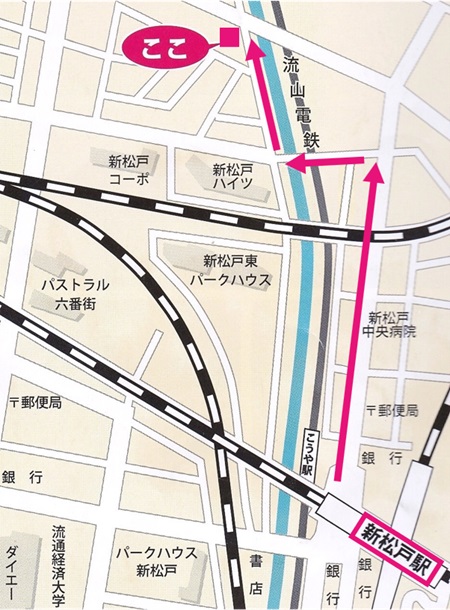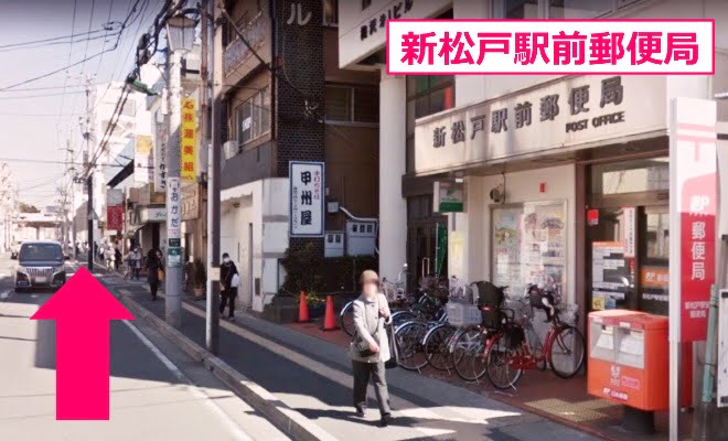 20メートル程、進むと右手に「新松戸駅郵便局」が見えます 更に直進