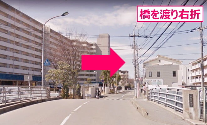 直ぐ「橋」がありますので渡り、十字路を右折します
