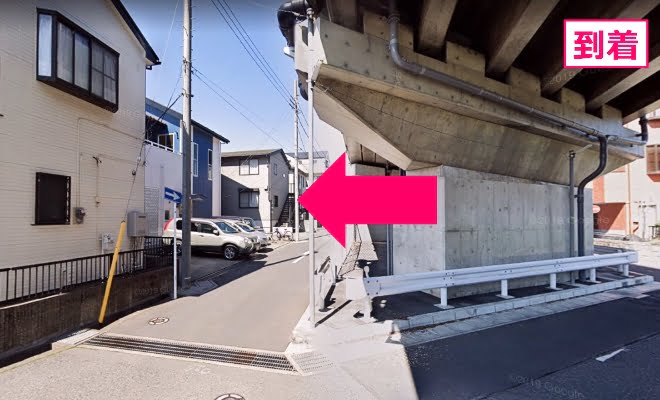 右折後、50メートル程先の「高架下」手前を左折で到着です