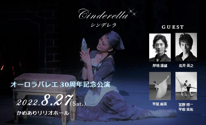 日程:2022年8月27日(土)開場16:00 開演16:30 会場:かめありリリオホール 作品:シンデレラ全幕 “In the Middle, Somewhat Elevated” by William Forsythe 眠りの森の美女よりグラン・パ・ド・ドゥ ルースカヤ 他 GUEST:厚地康雄 荒井英之 平尾麻実 営野翔一 平松美祐 田名部正治 岡脇柚太加 他 入場:[前売]5,000円[当日]6,000円(全席指定)